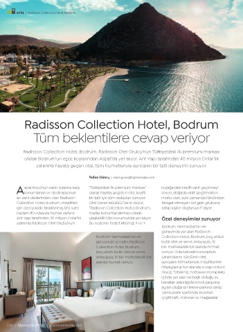 için özel şekilde tasarlanmış 16’sı suite “Radisson Collection Hotel, Bodrum, sahip kişiler oluşturuyor” diyor.