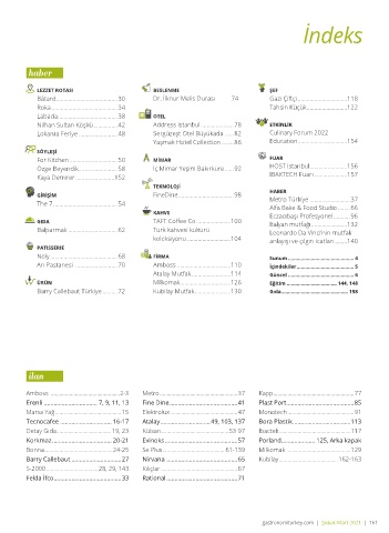 Barry Callebaut Türkiye ..........72 Kubilay Mutfak ........................130 Gıda ............................................... 158