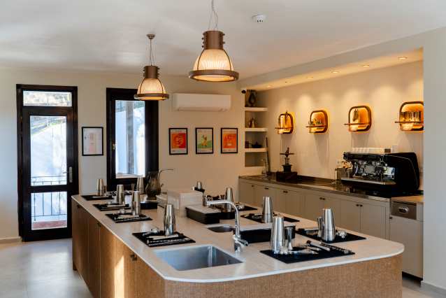 İçecek ve servis sanatları eğitimi için tasarlanan 20 kişi kapasiteli özel sınıf; orijinal barı, barista istasyonu ve ortak ada alanıyla barmenlikten miksolojiye, kahve uzmanlığından şarap atölyelerine kadar çok amaçlı bir kullanım alanı sağlıyor. Teorik eğitimler ise akıllı ekranlarla donatılmış 15’er kişilik sınıflarda, sadece ders odaklı değil; toplantı ve söyleşiler için de uygun bir atmosferde sürdürülüyor.