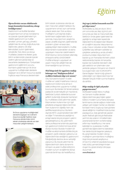 Gastronomi ve Mutfak Sanatları yıllardır eksik olan Türk ve Kıbrıs yılın sonunda yaz stajı, üçüncü yılın