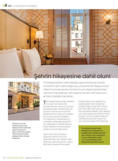 052-055 OTEL- The Galata İstanbul Hotel-MGallery.indd 52 19.12.2023 19:29