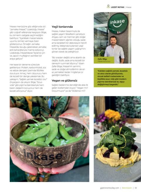 şekilleniyor. Protein, karbonhidrat, sos Zafer Bilge, İnkase’nin samimi,