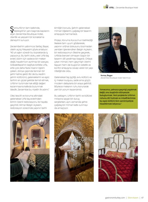 şehrin kültürünü, geleneklerini ve eşsiz Geleneksel taş işçiliği, avlu kültürü ve Zerzembe Boutique Hotel Yatırımcısı