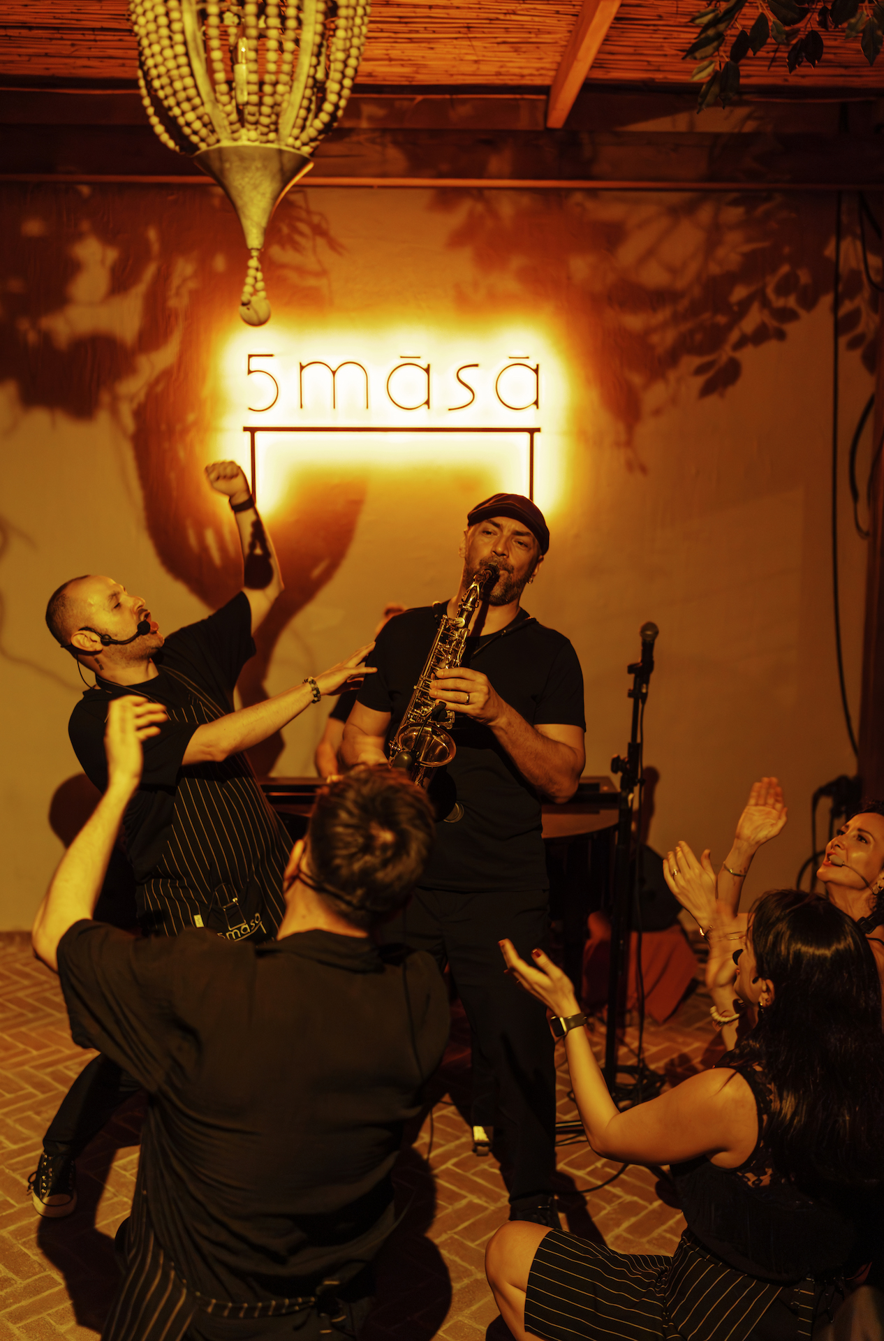 5masa ekibi, aşçısından servis personeline kadar profesyonel müzik eğitimi almış, konservatuvar geçmişine sahip ve sahne deneyimi bulunan isimlerden oluşuyor. Güçlü vokaller, canlı performanslar ve doğaçlama şovlar, bilinçli bir kurgu ile gecenin akışına yayılıyor. Bu sayede misafirler bir gösteriyi izleyen konumunda kalmıyor; müziğin ve şovun doğal bir parçası haline geliyor.
