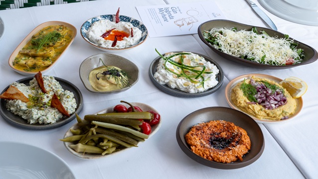 Ara sıcaklarda güveçte yaprak ciğer ve kokoreç gibi klasik lezzetler modern sunumlarla servis edilirken; kalamar tava, levrek simit ve Rum böreği sofraya eşlik etti. Ana yemekte sunulan beğendili kuzu saç kavurma, davetin güçlü lezzet finalini oluştururken; mevsim meyveleri ve soğuk süt eşliğinde servis edilen ılık irmik helvası, deneyimi zarif bir tatlı dokunuşla tamamladı.