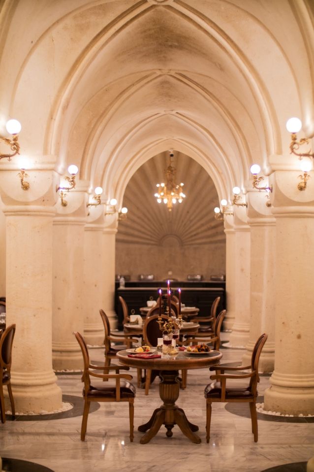 Otelde 68 kişinin ağırlanabildiği bir ana restoran da yer alıyor ve benzersiz bir atmosferde yeme içme deneyimi sunuyor. Restoranın tasarımında kullanılan kolonlar, kemerler ve taş döşemeler, yeme içme deneyimini tamamlıyor.