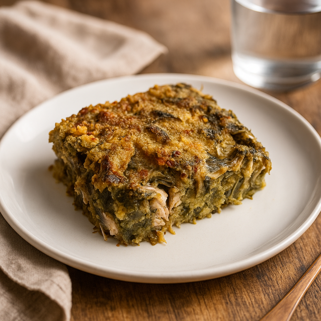 Pazı, maydanoz, dereotu ve taze soğan bol suyla yıkanıp temizlenir ve ince ince doğranarak derin bir kaba alınır. Hamsiler küçük küçük doğranır ve doğranmış yeşilliklerin üzerine eklenir. Kuru soğan ince ince doğranıp, bir miktar tuz ile ovulur, ardından suyla durulanır ve karışıma ilave edilir. Mısır unu, tuz, karabiber, zeytinyağı ve sıcak su eklenerek tüm malzemeler yoğurulur. Bir fırın kabı tereyağı ile yağlanır, hazırlanan karışım kaba boşaltılır ve üzeri düzeltilir. Önceden ısıtılmış 170 derece fırında, üzeri kızarana kadar yaklaşık 60 dakika pişirilir. Fırından çıkarıldıktan sonra dilimlenir ve sıcak ya da ılık olarak servis edilir.